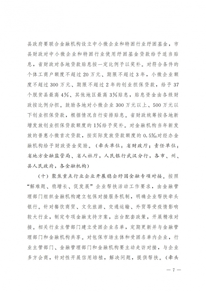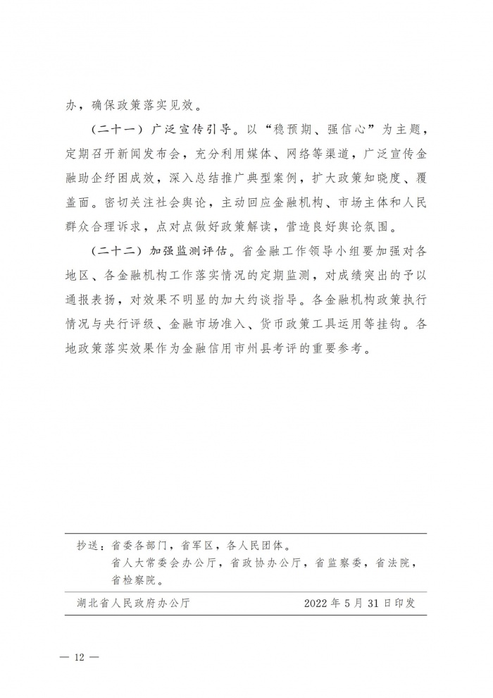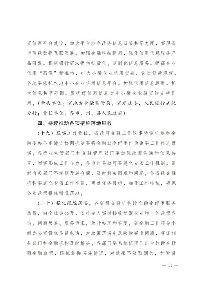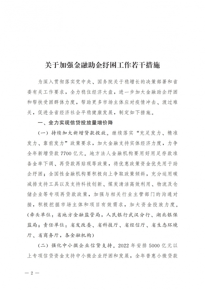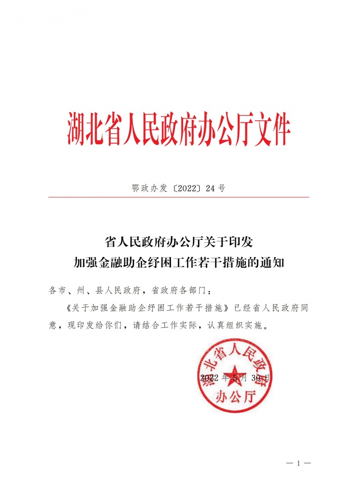 湖北省人民政府辦公廳關(guān)于印發(fā)加強(qiáng)金融助企紓困工作若干措施的通知