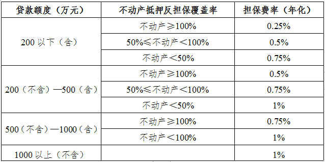 1.以動(dòng)產(chǎn)、信用等作為反擔(dān)保措施的擔(dān)保業(yè)務(wù),擔(dān)保費(fèi)率統(tǒng)一為1%/年。