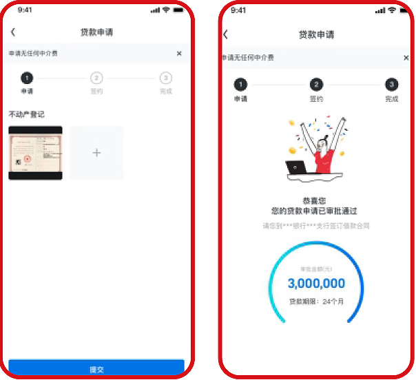 進入[申請]-完善資料一點擊提交申請,等待銀行審批。