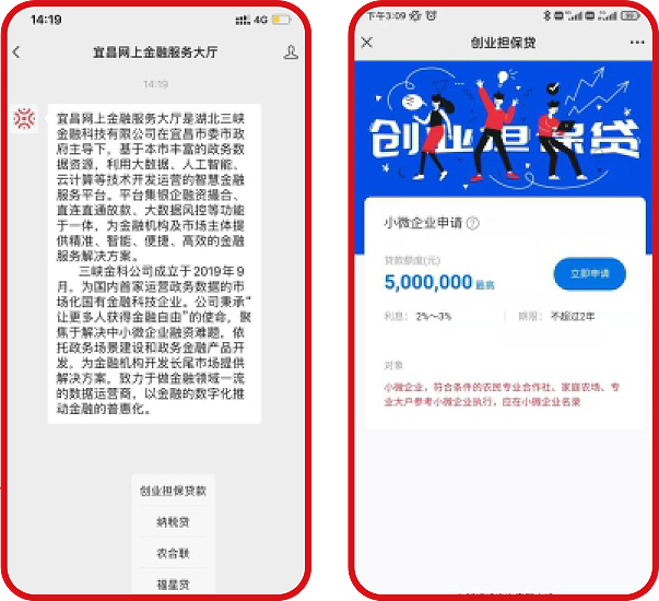 關(guān)注公眾號“宜昌網(wǎng)上金融服務(wù)大廳”,選擇“創(chuàng)業(yè)擔保貸款”后點擊“立即申請”, 輸入用戶手機號碼及驗證碼登錄。