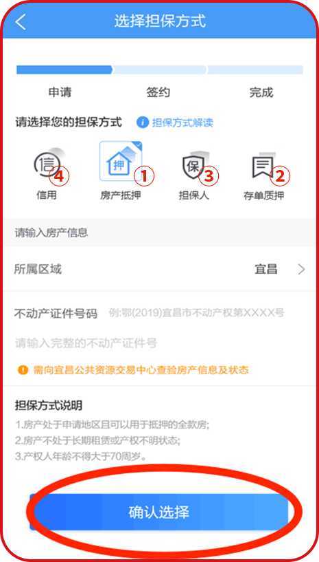 注:若是出現(xiàn)信用擔保方式,則表示申請人配偶符合擔保條件,無需再選擇其他擔保人。
