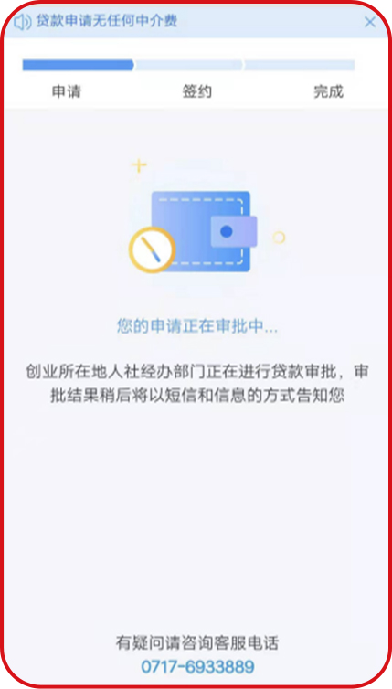 點【提交】——顯示創(chuàng)業(yè)所在地人社經辦部門正在進行貸款審批
